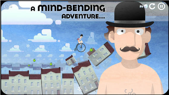 Icycle: On Thin Ice《雪地单车》是开发商Damp Gnat的最新作,Chillingo代理发行,画面和前作Wonderputt一样清新另类,其中的动画及插画,体现出一种超现实主义的奇特与唯美,令人过目难忘,场景变化更是创意无限,男主人公骑着自行车在各种世界中穿梭!